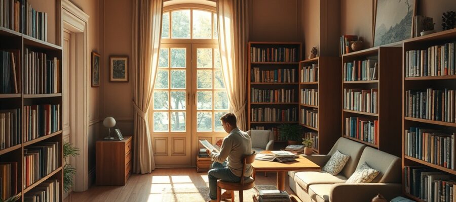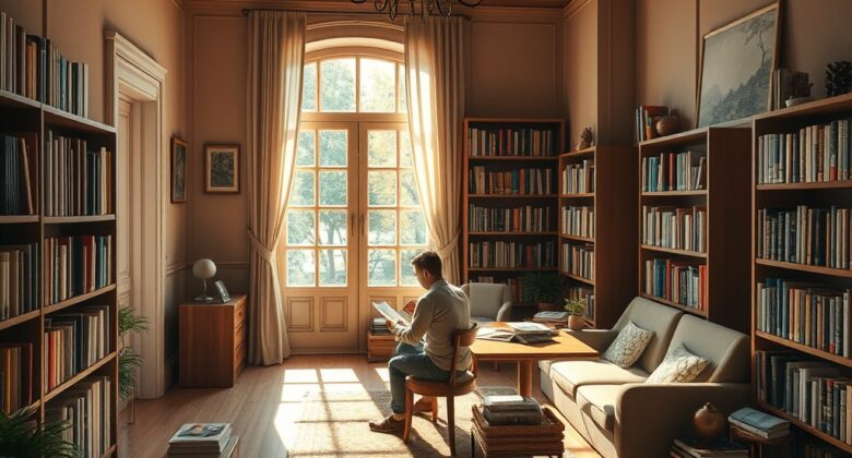 Дом с библиотекой, переходящей в рабочий кабинет